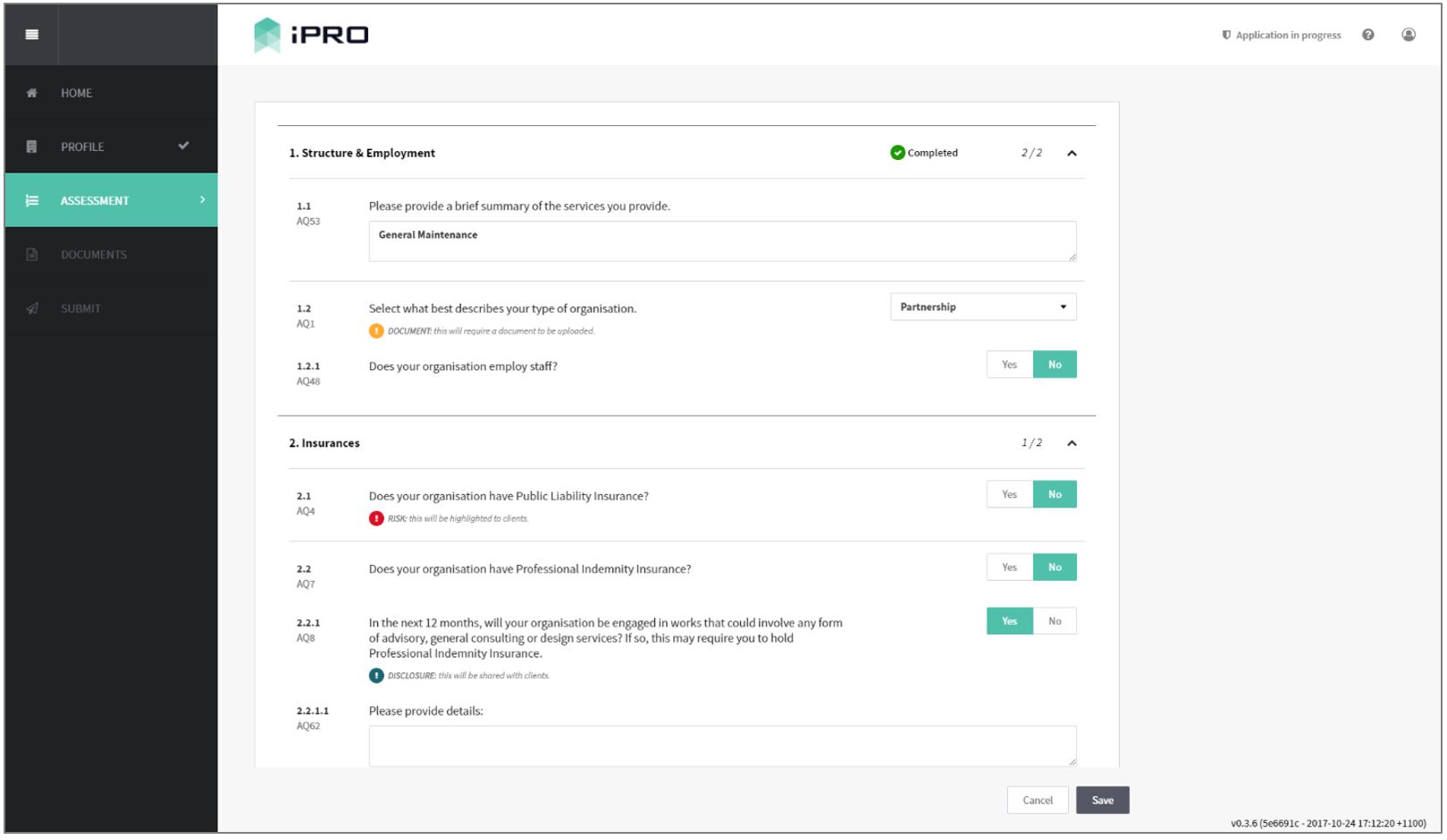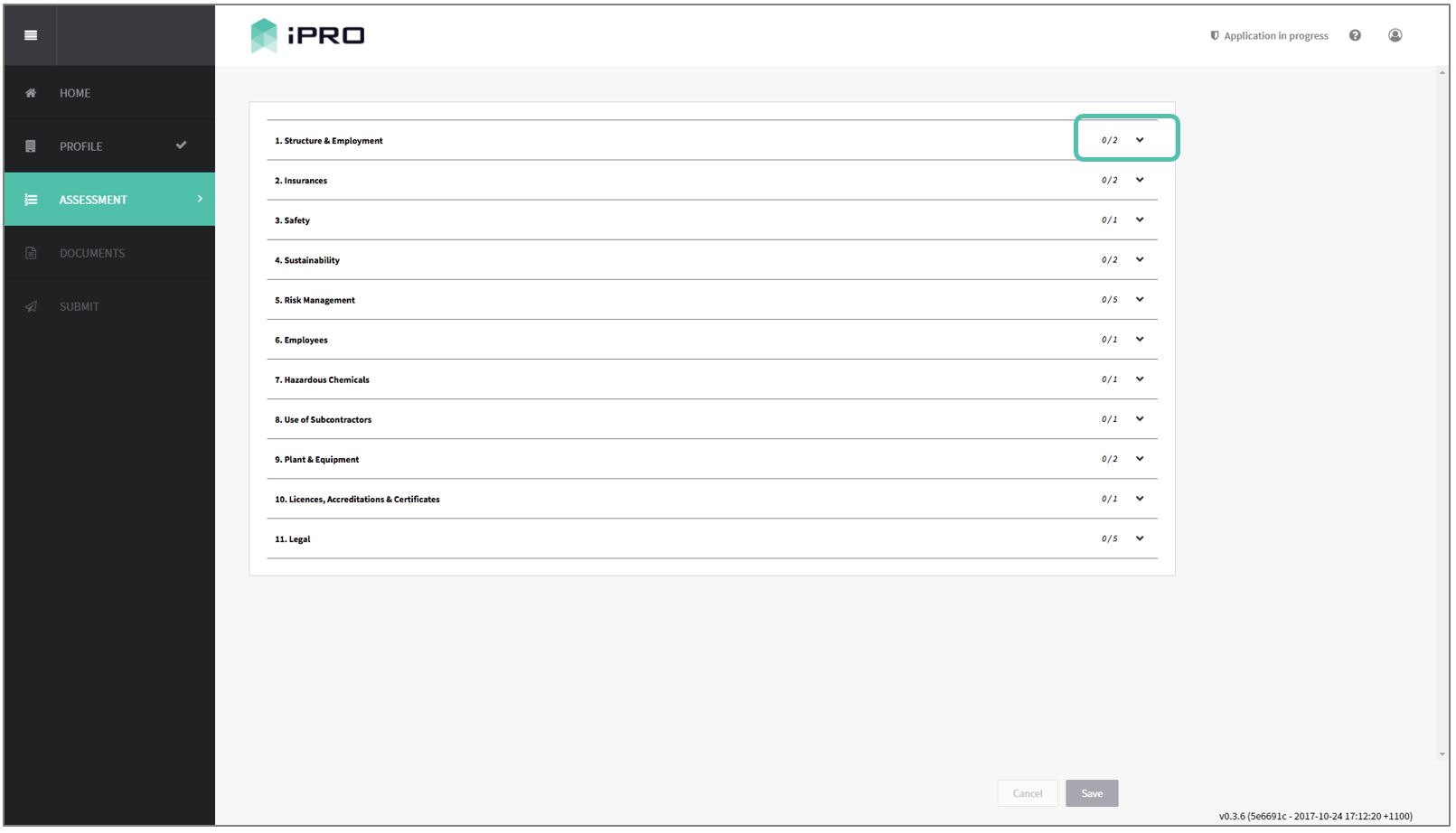 2. The assessment module will load, ready for completion. Simply click on the dropdown arrow of ‘Structure and Employment’ to commence answering assessment questions (refer below).