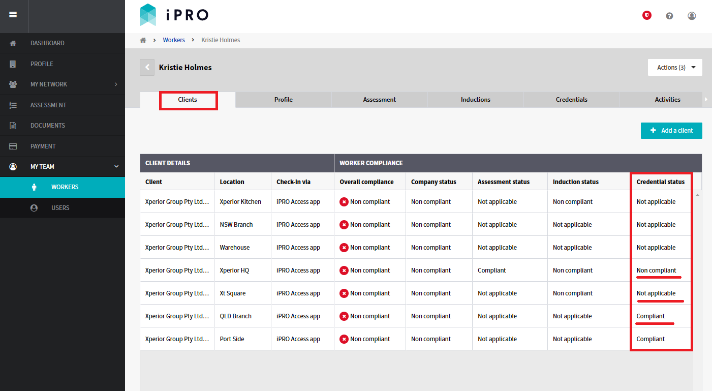 (a) The worker must be connected to a client and its location (if applicable) in order to determine if a credential is a compliance requirement. For more information, refer: Managing a Worker's Client Connections.