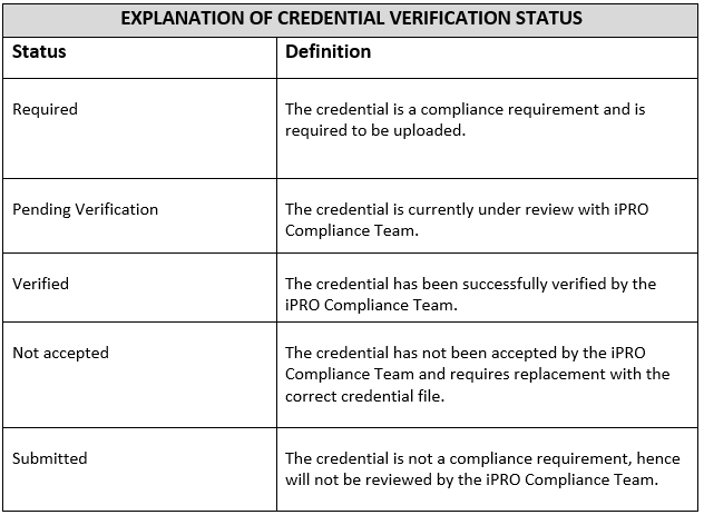 To understand a credential's verification status, refer to the table titled Explanation of a Credential's Verification Status below.