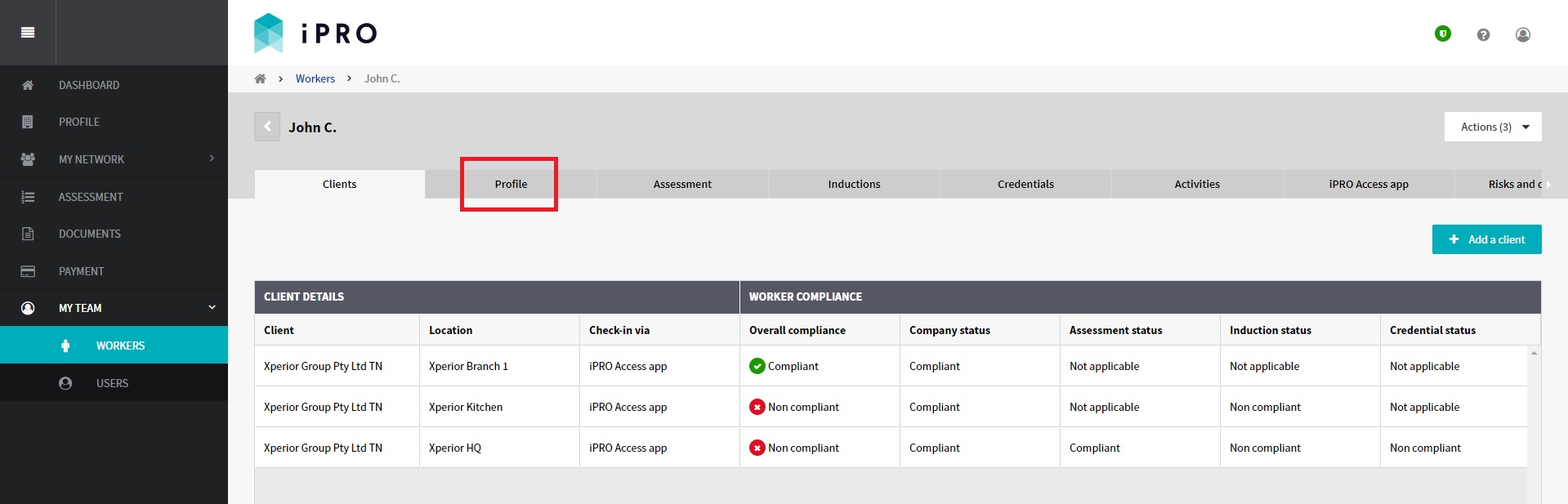 You will be re-directed to the worker's compliance summary, displayed within the Clients tab.