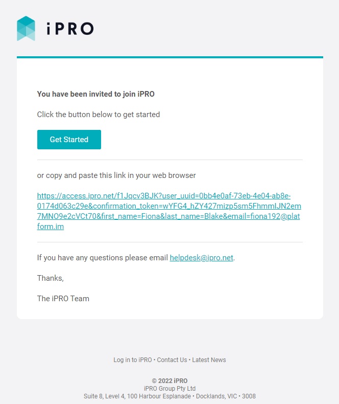 The Invited worker will receive an email on his updated email address, containing a link to activate their iPRO worker account by setting a password.