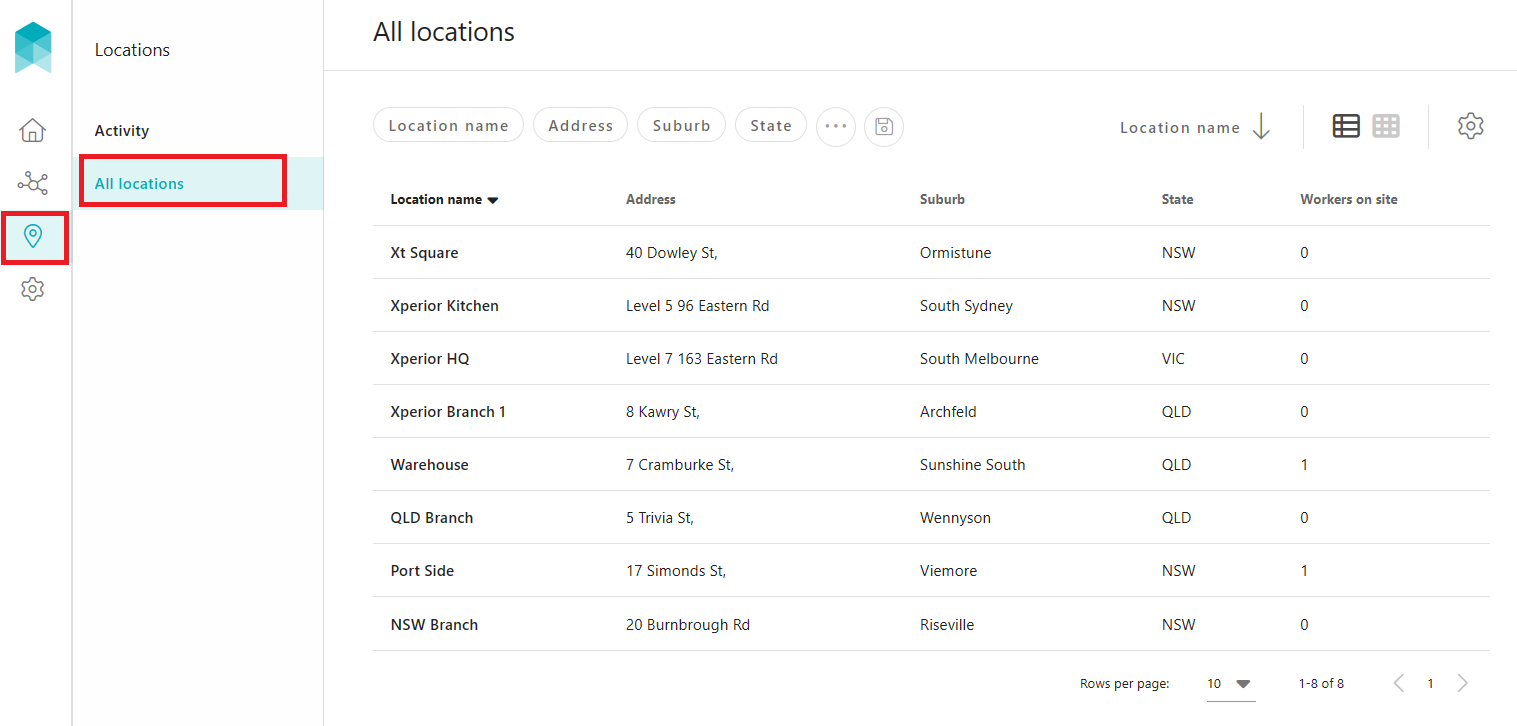- Click Locations and then click All locations; a list of locations that are configured for worker check-in will appear.