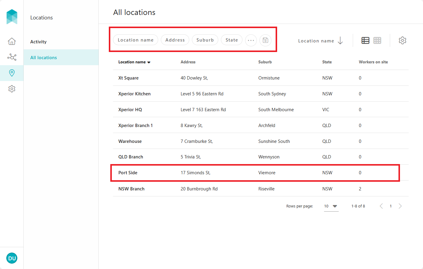 - Find and click the specific location where you need the check-in point signage. Use the search filters available at the top of the list to find the location quickly.