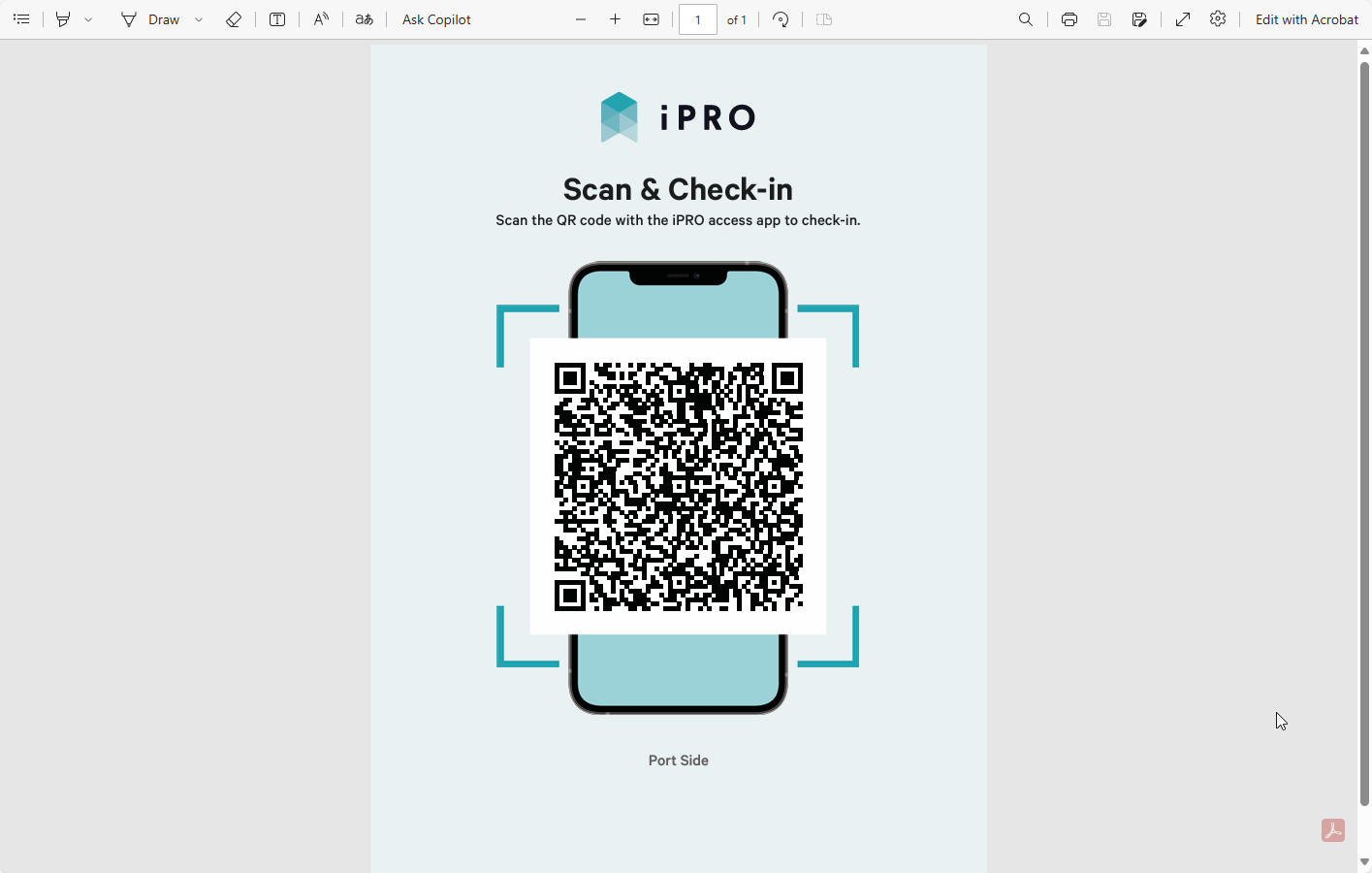 - Check-in point signage is available for locations that require workers to use the iPRO Access mobile app for on-site check-in.