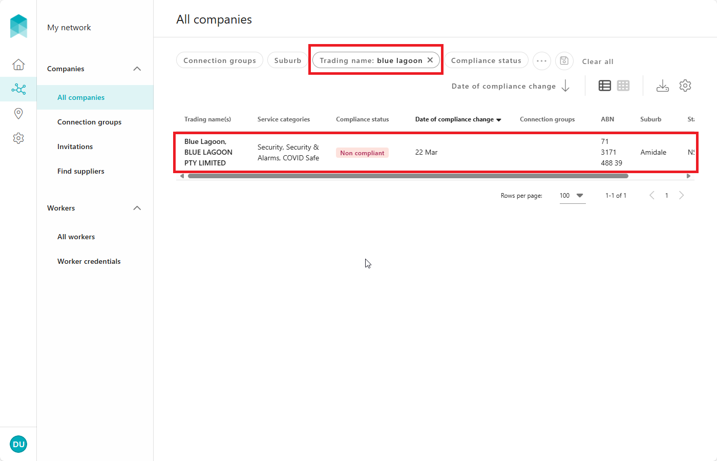 Tip: To view companies with this status, use the 'Compliance status' filter above the companies list.