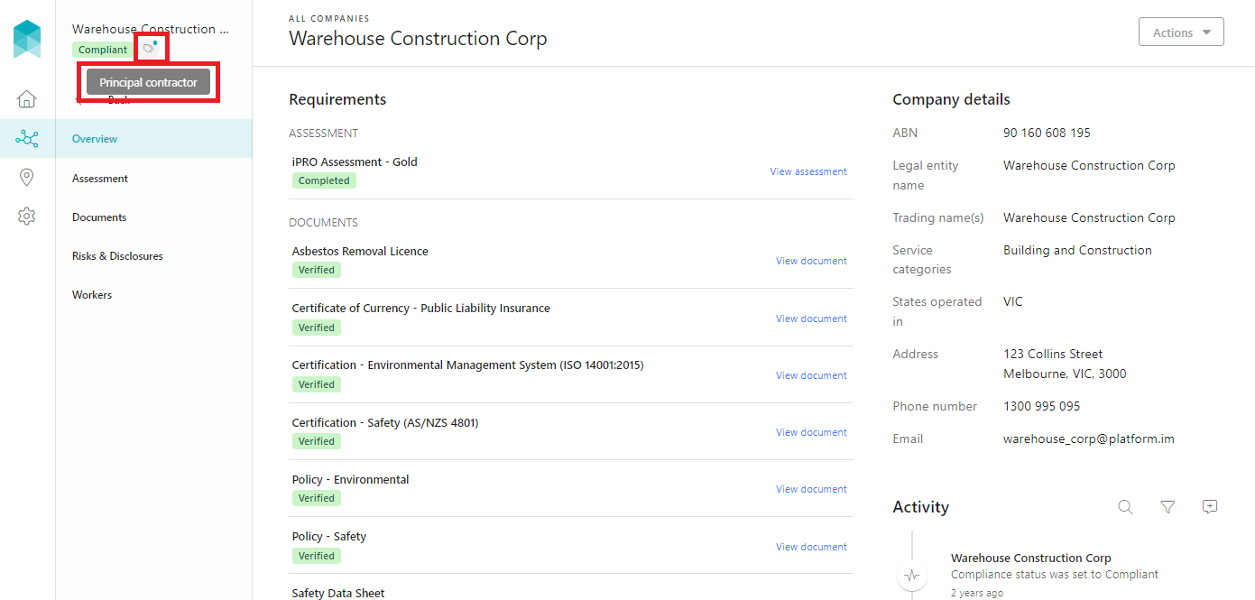 A green dot will appear on the connection group tag icon to indicate connection group/s have been applied. Hovering the mouse over the tag icon will display the connection groups that have been assigned to the company.