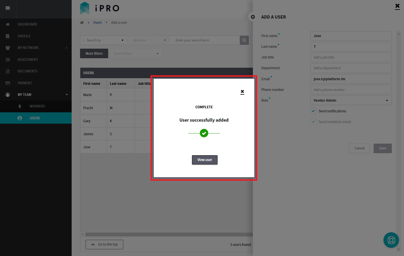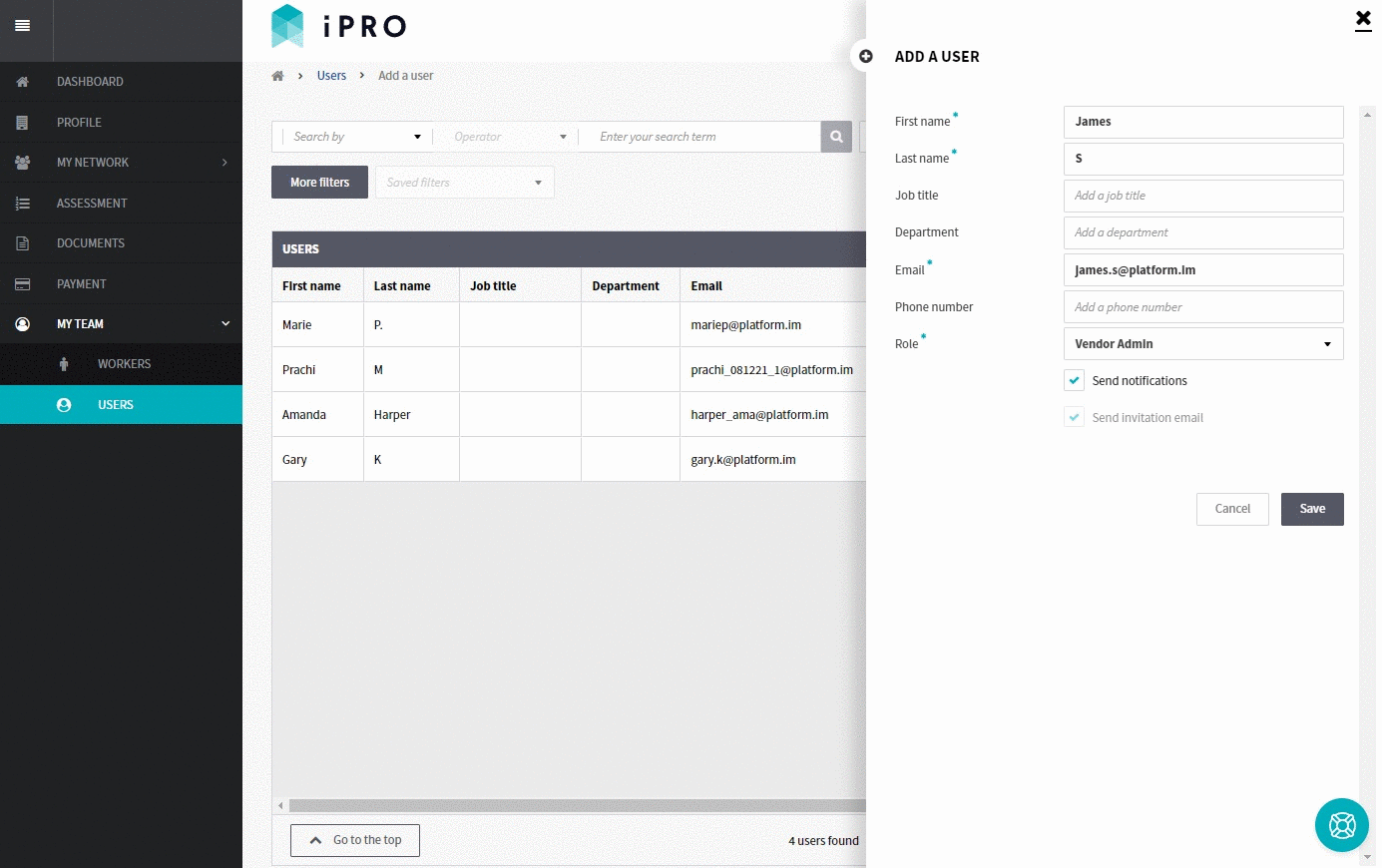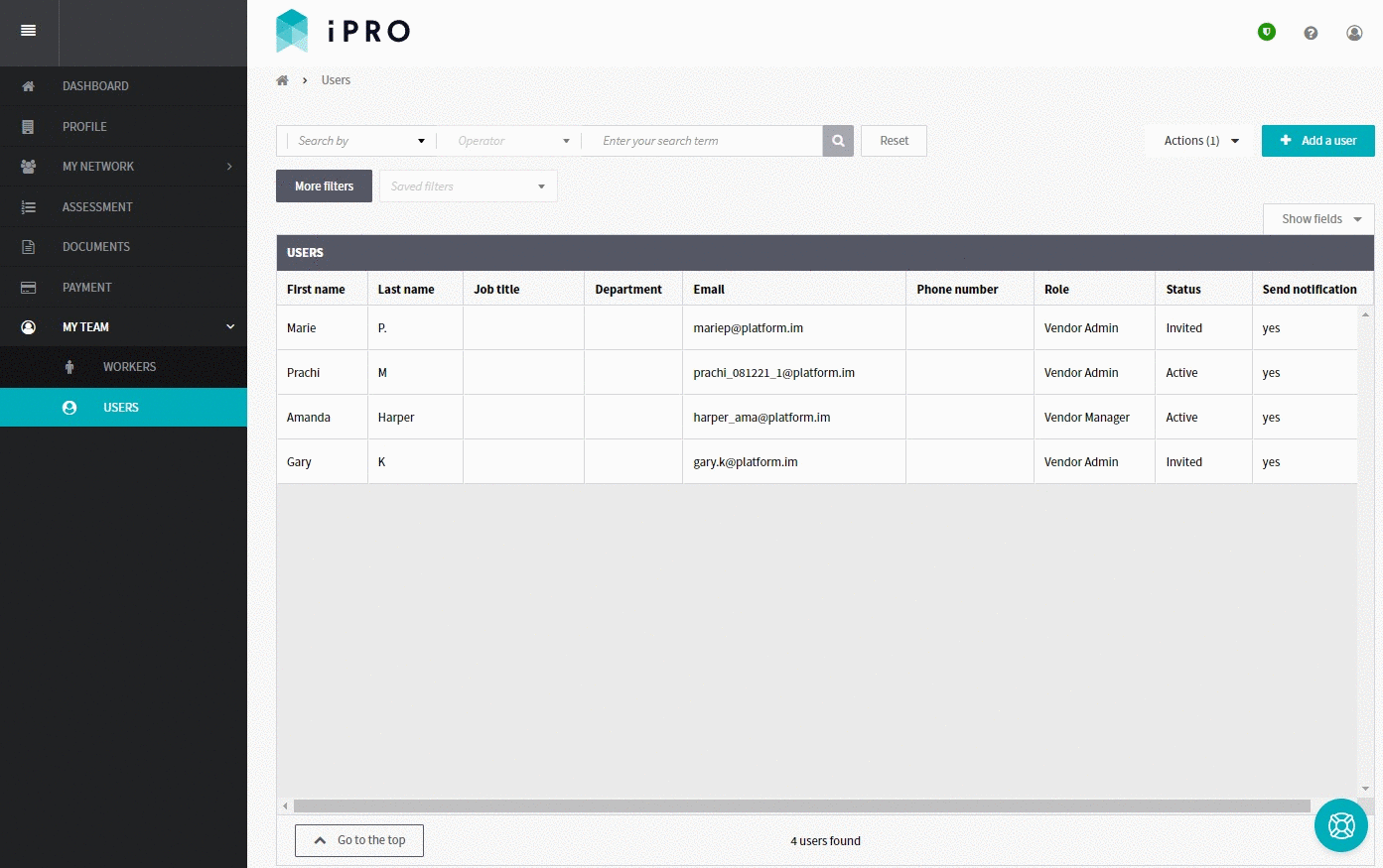 - A User is someone within your organisation who requires access to your iPRO company account to view or manage your organisation's compliance as per the associated client's requirements, and if applicable, manage the workers requiring to visit the client's locations.