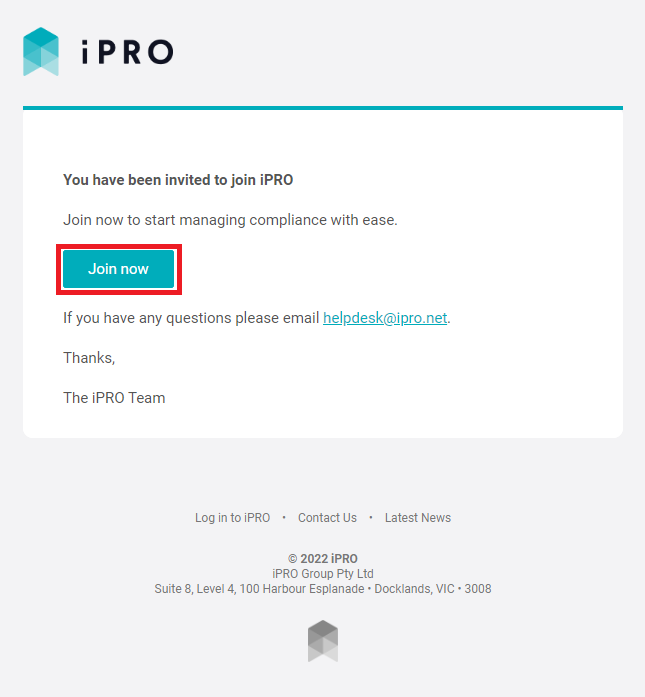 The invited user will be sent an email inviting them to join iPRO. After clicking the Join now button, the user will be prompted to activate their account by entering their First Name, Last Name, and a Password. After activation, the User will appear in the Users list with an Active status.