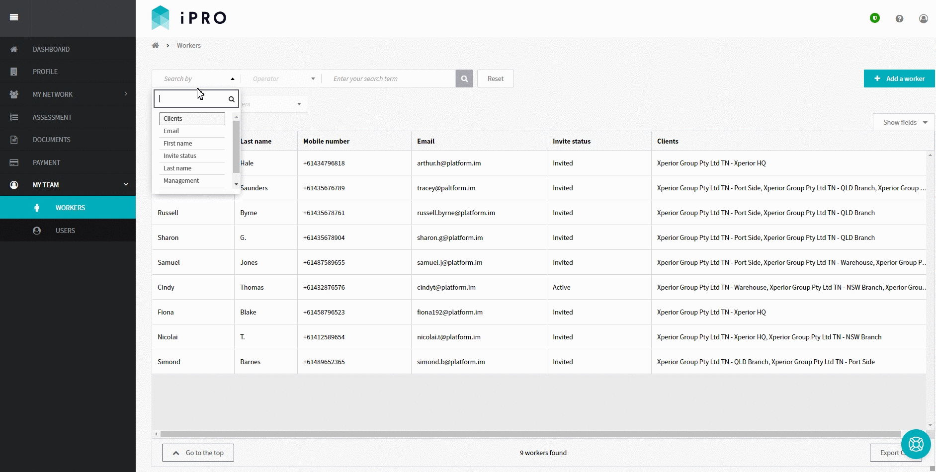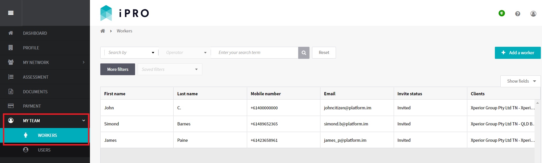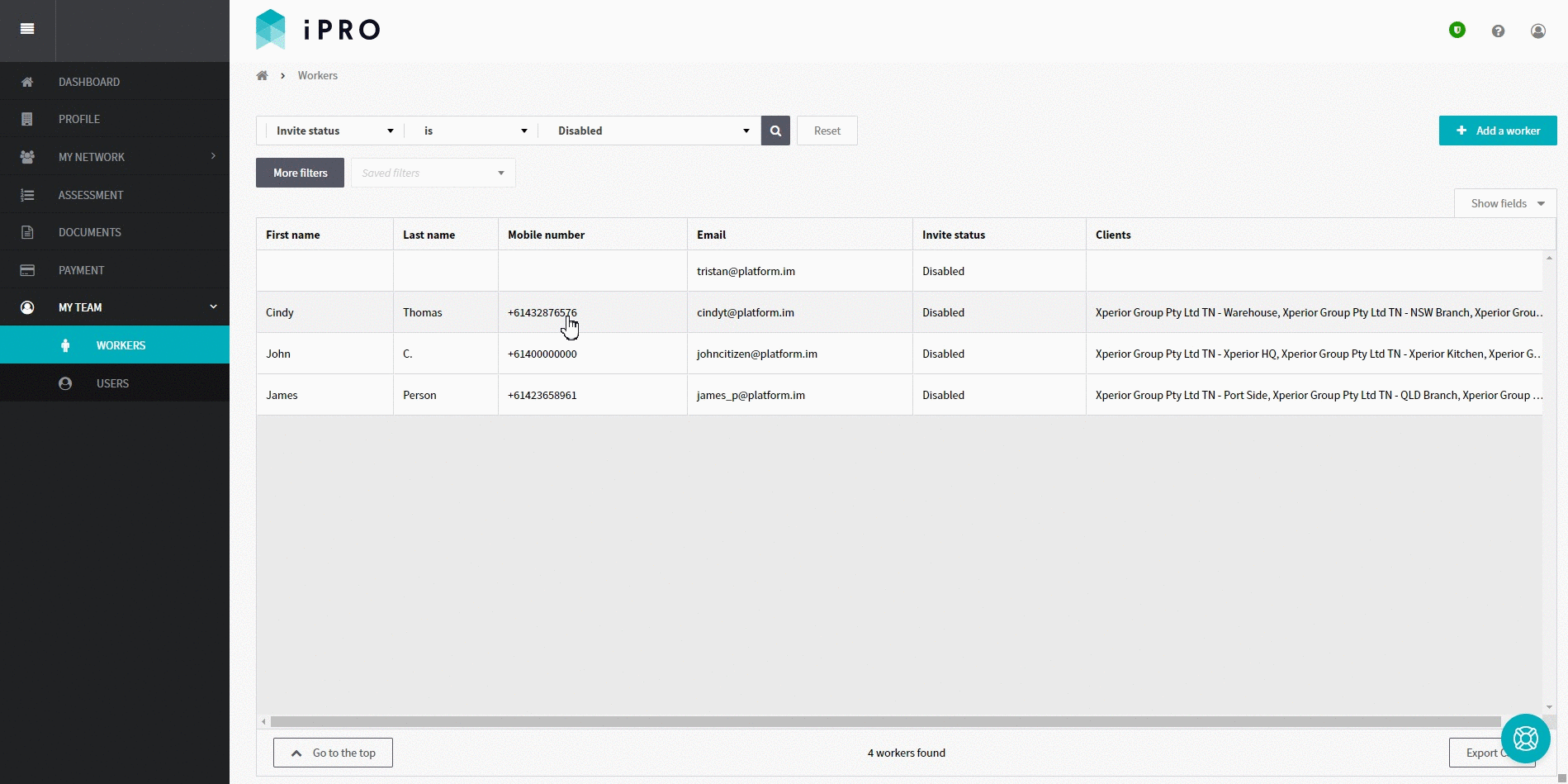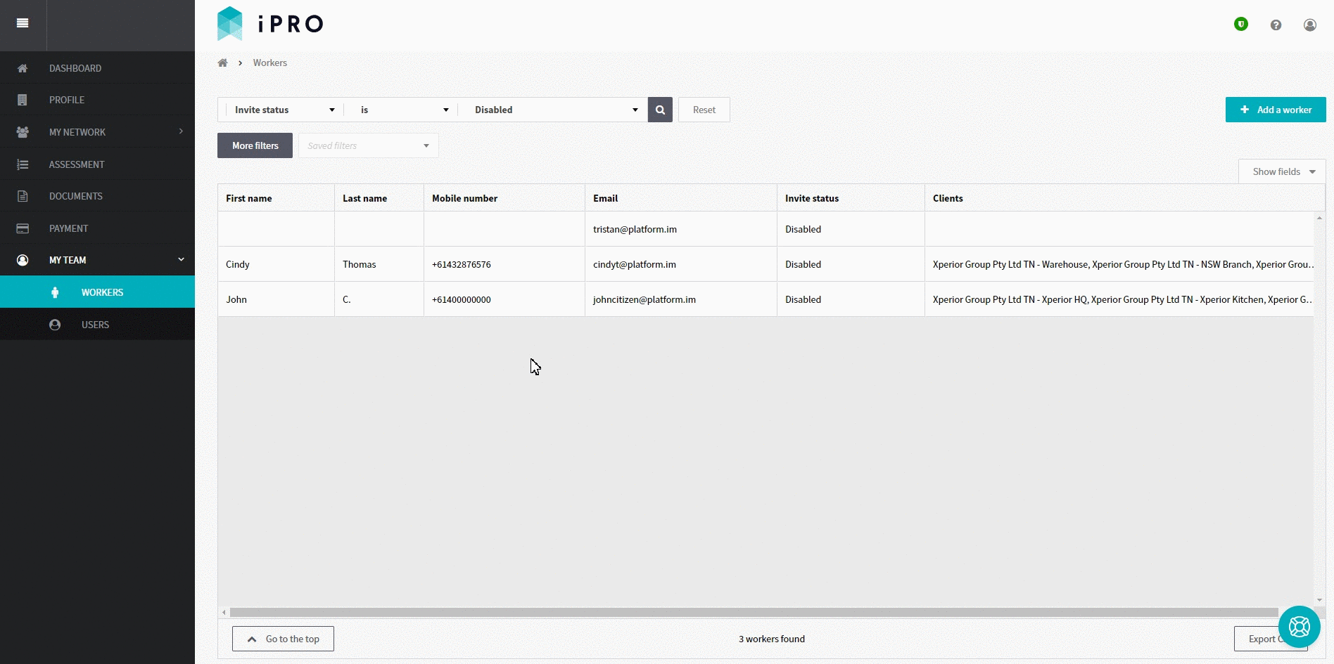Log in > MY TEAM > WORKERS> Search by: Invite Status is Disabled > Click on the disabled worker record > Set to active OR Invite to iPRO Access